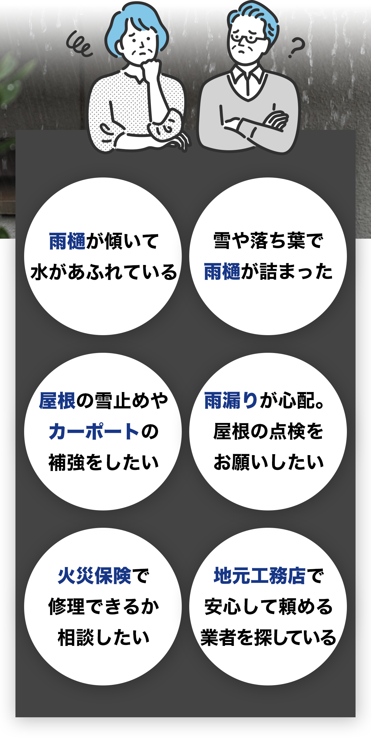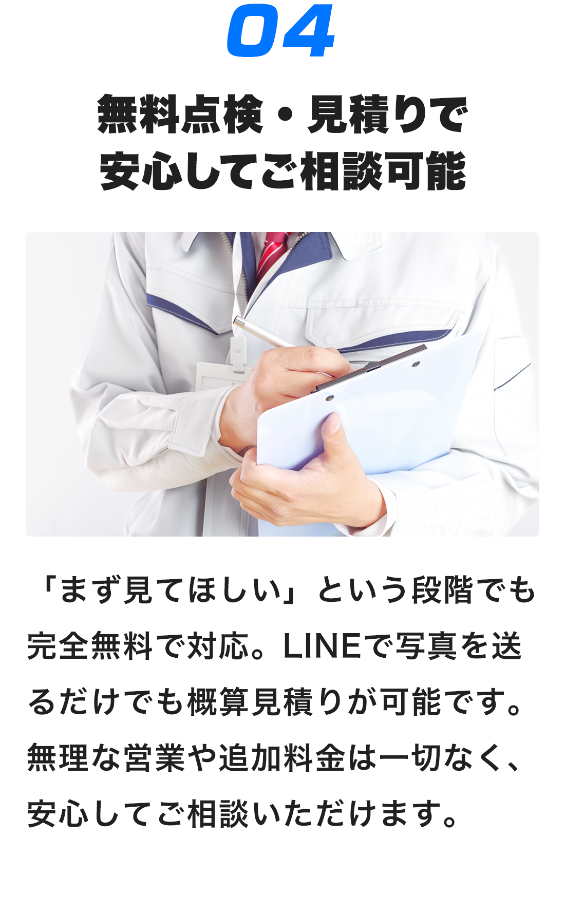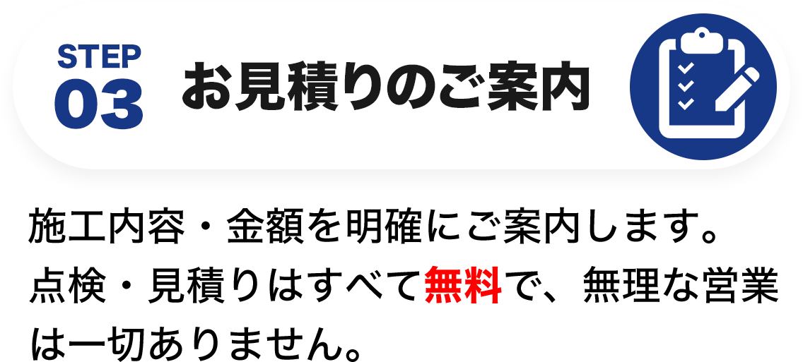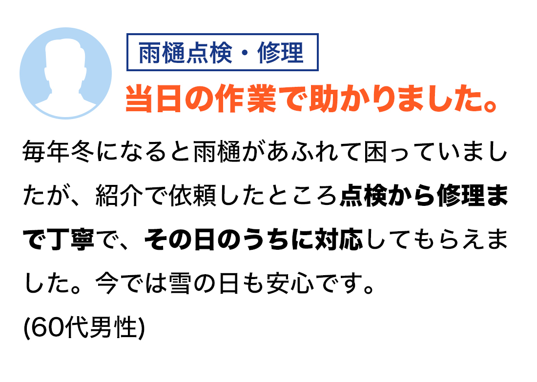 はい、無料で対応しています。雨樋や屋根の状態を見て「今すぐ修理が必要かどうか」だけをお伝えします。点検後に無理な営業は一切行いませんのでご安心ください。