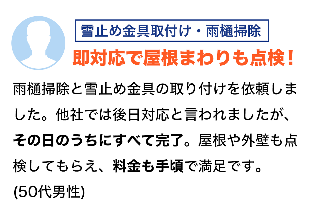 ・雪止め金具取付:約半日〜1日程度